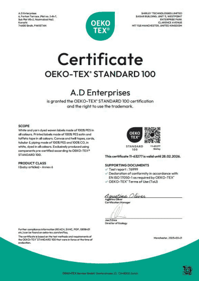 Founded in 2019, A.D. Enterprises is a Karachi-based printing and packaging solutions provider serving both local and international customers. We specialize in high-quality labels, accessories, and packaging materials that help businesses enhance their brand identity and product presentation. With a commitment to innovation, customer satisfaction, and sustainability, we combine advanced printing technologies with creative design to deliver reliable, customized, and eco-friendly packaging solutions. Over the years, we have built long-term partnerships with clients across various industries, including textiles, apparel, FMCG, and retail. Our dedication to quality, trust, and timely delivery makes us a preferred partner for brands aiming to stand out in competitive markets.
